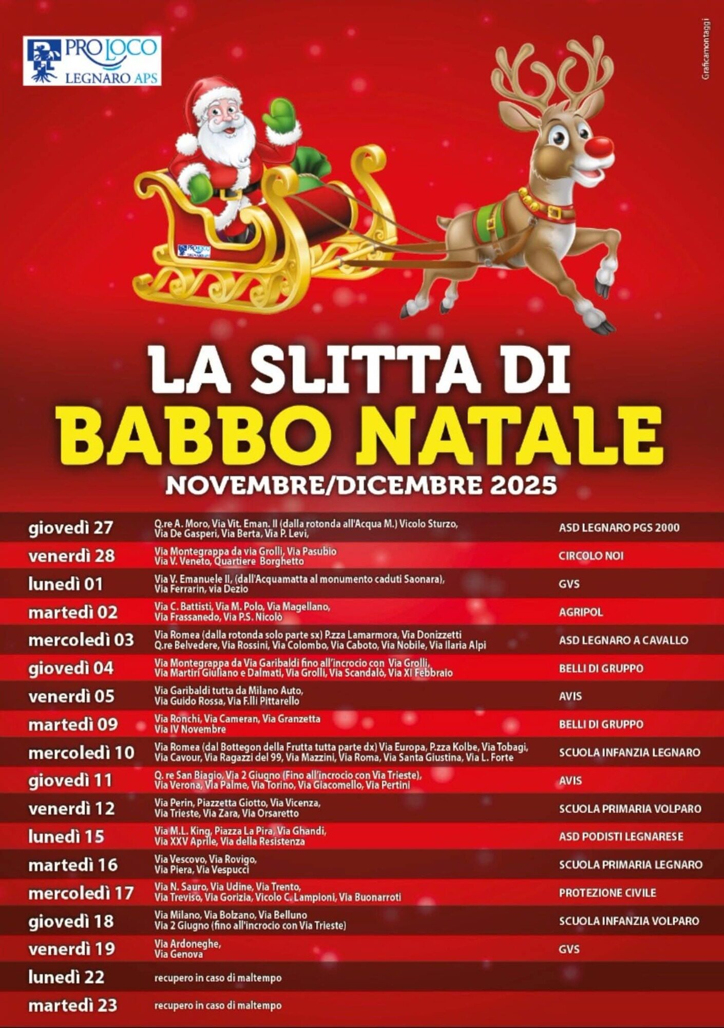 Dal 6 dicembre 2025 al 6 gennaio 2026, si festeggia il Natale a Legnaro con tanti eventi in programma di vario genere.